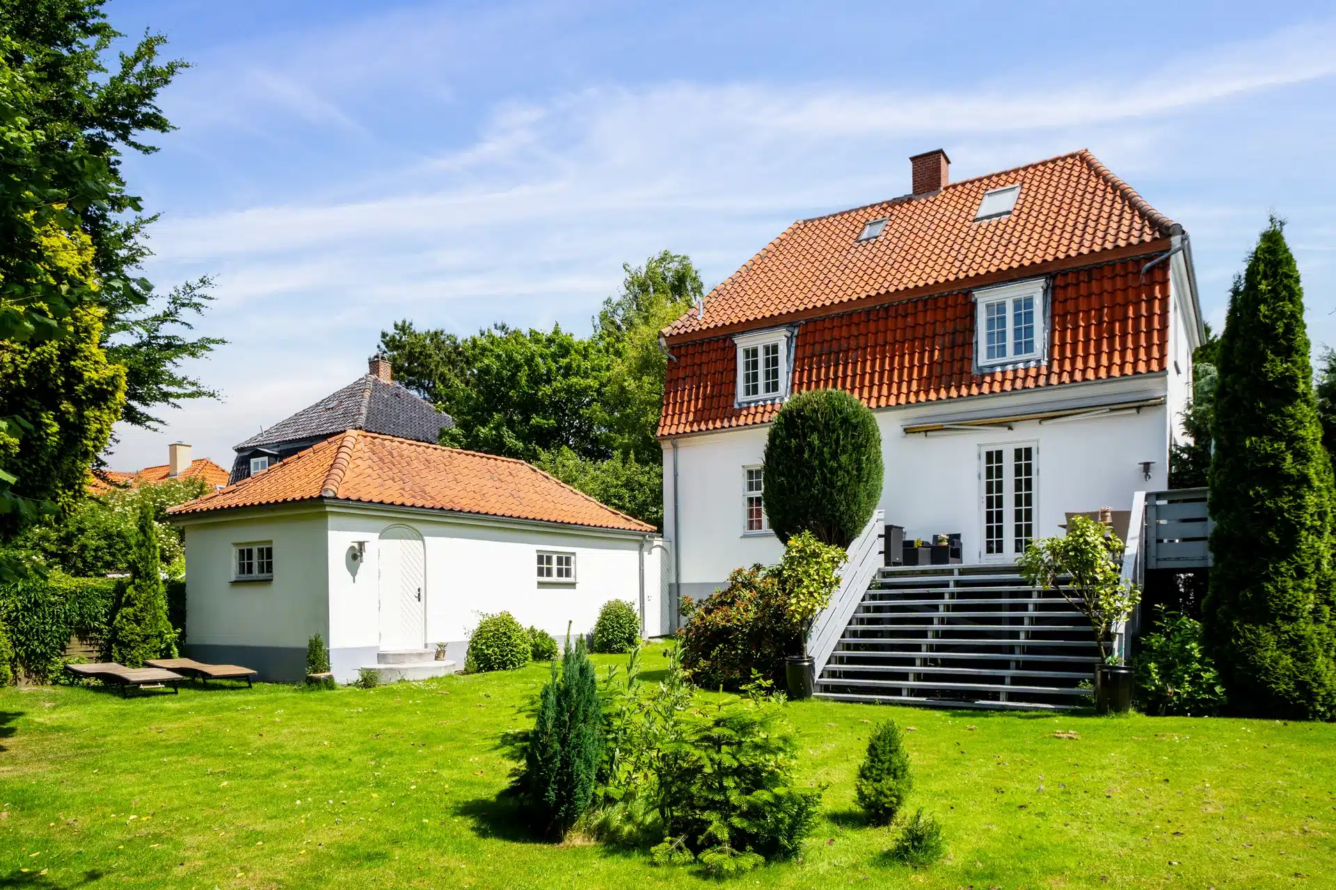 The beautiful garden is a chapter of its own. Green lawns, sunny terraces and beautiful plantings create a private and peaceful oasis - perfect for summer days, playing with the kids or cosy dinners al fresco.