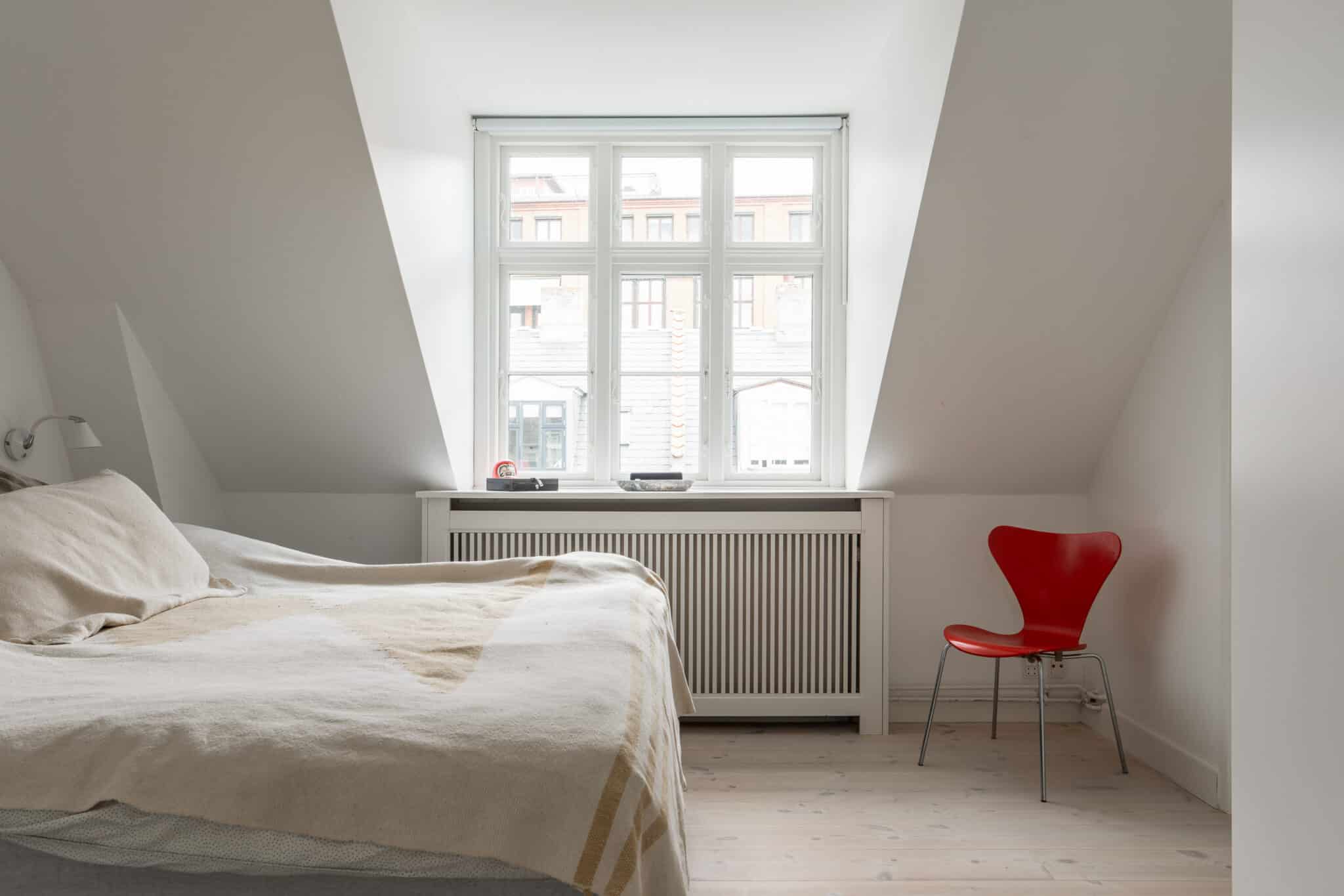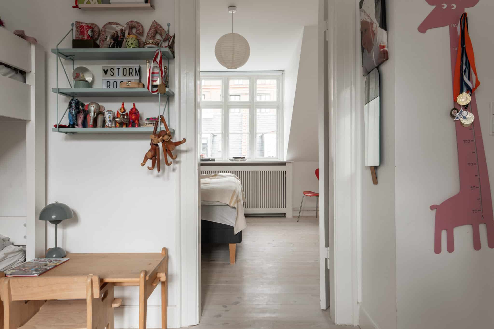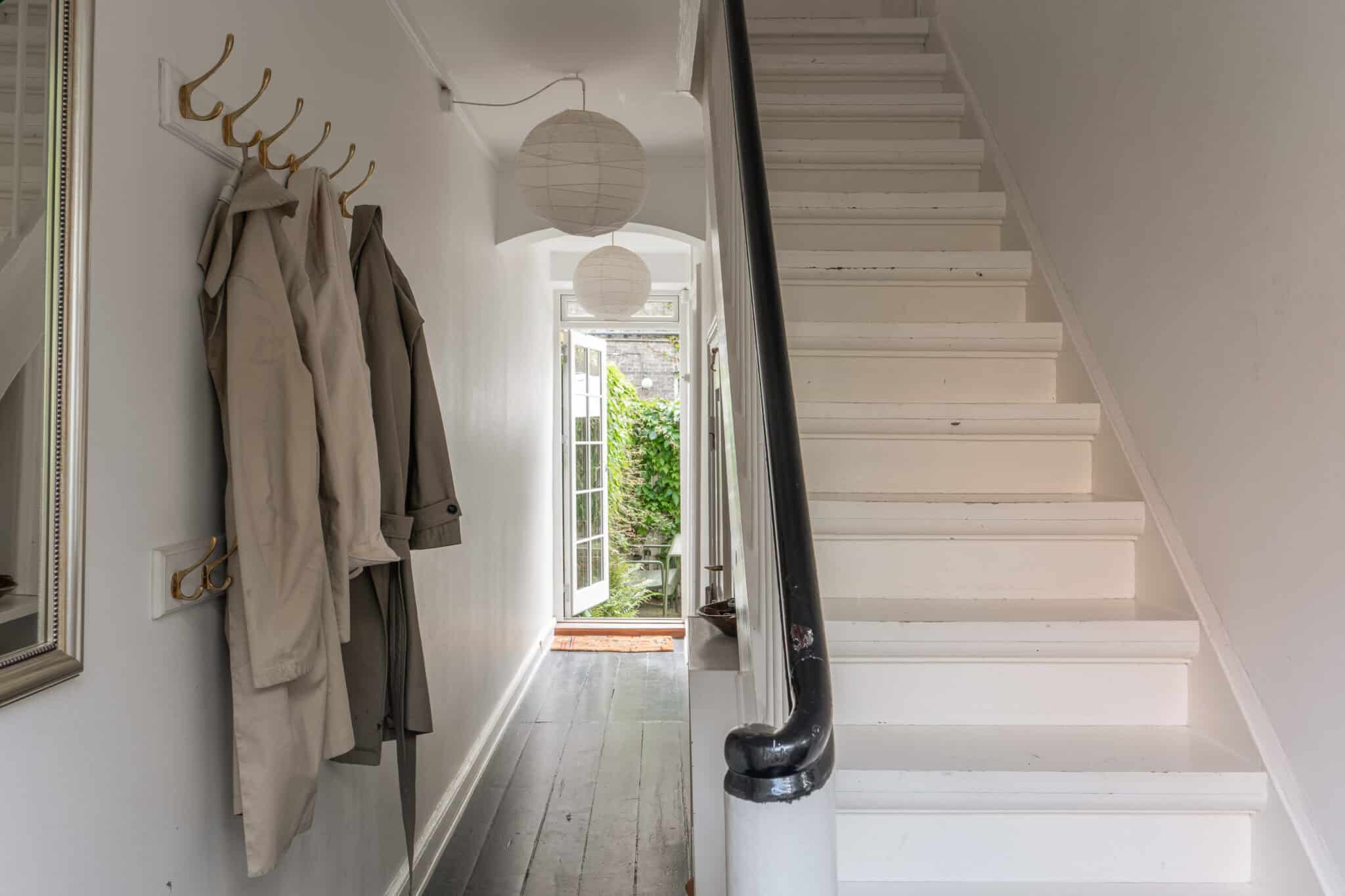 Stueetagen fungerer som boligens hjerte med et lyst køkken i åben forbindelse til en rummelig stue, hvorfra der er direkte udgang til en privat gårdhave med tilhørende skur – perfekt til lune sommeraftener. På de øvre etager finder man de private gemakker, herunder en stor, lys stue på 1. sal samt to gode værelser på 2. sal, hvoraf det ene er indrettet med charmerende skråvægge og et fantastisk lysindfald. Boligen rummer desuden både et gæstetoilet på 1. sal og et stilrent badeværelse på 2. sal med klassiske detaljer.