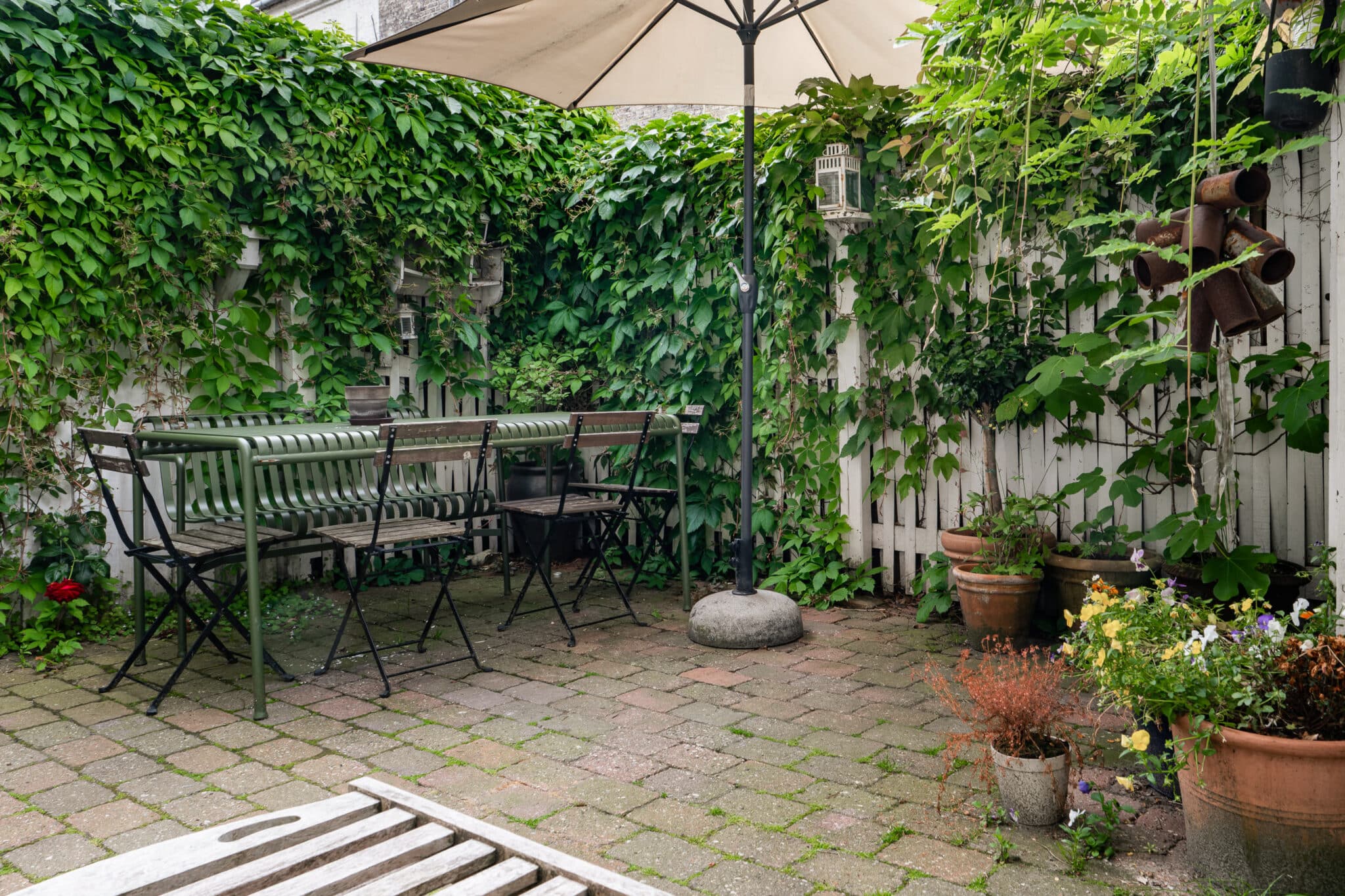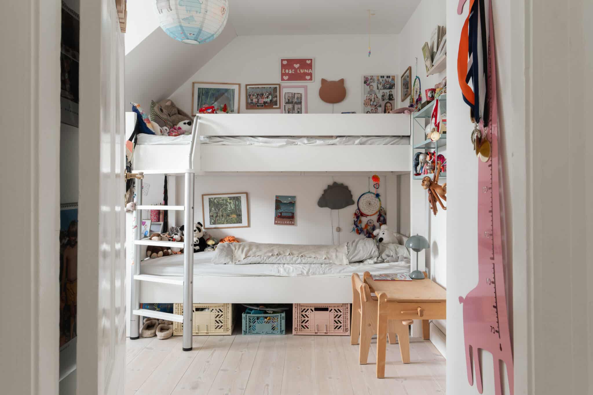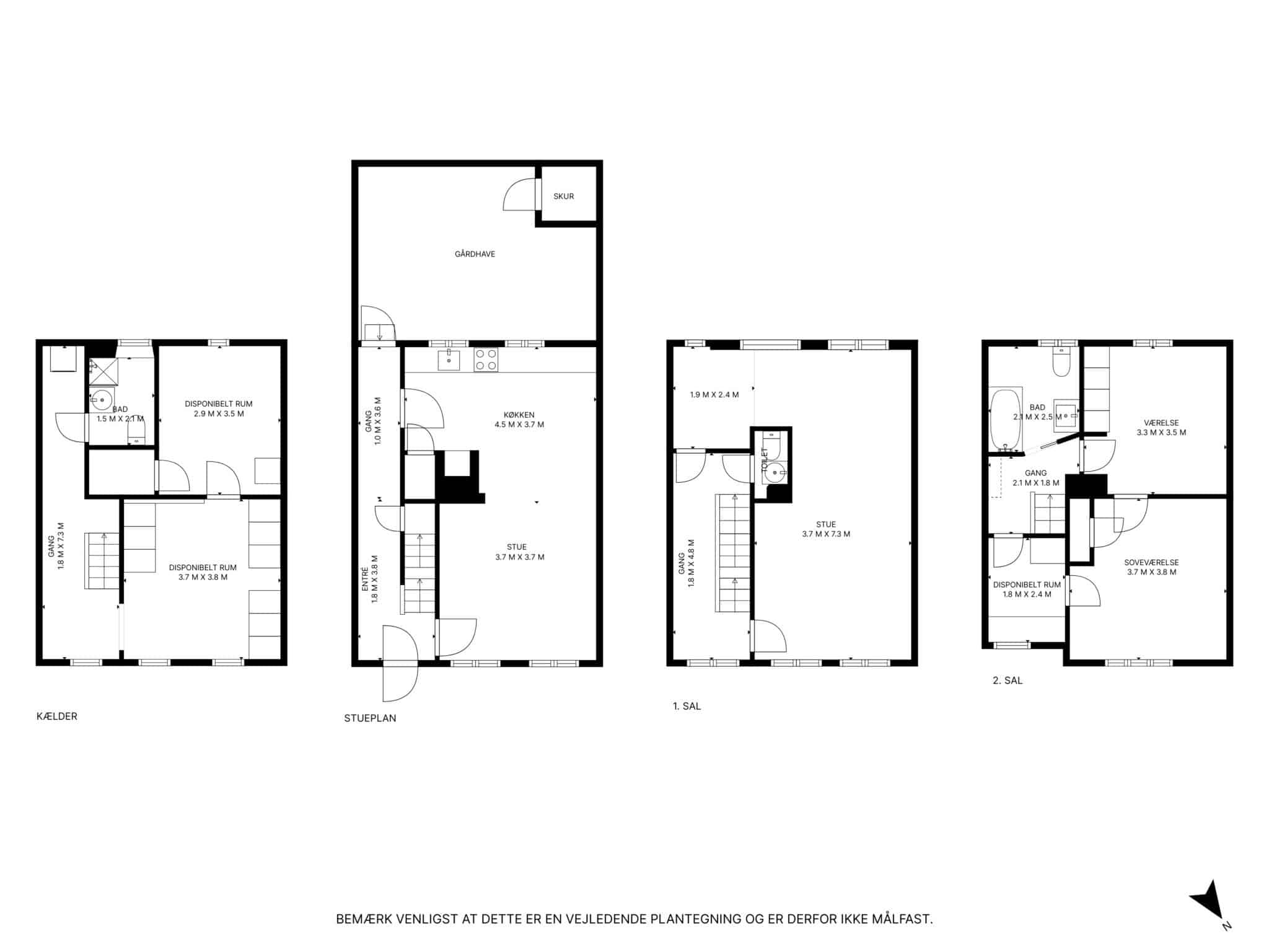 Stueetagen fungerer som boligens hjerte med et lyst køkken i åben forbindelse til en rummelig stue, hvorfra der er direkte udgang til en privat gårdhave med tilhørende skur – perfekt til lune sommeraftener. På de øvre etager finder man de private gemakker, herunder en stor, lys stue på 1. sal samt to gode værelser på 2. sal, hvoraf det ene er indrettet med charmerende skråvægge og et fantastisk lysindfald. Boligen rummer desuden både et gæstetoilet på 1. sal og et stilrent badeværelse på 2. sal med klassiske detaljer.