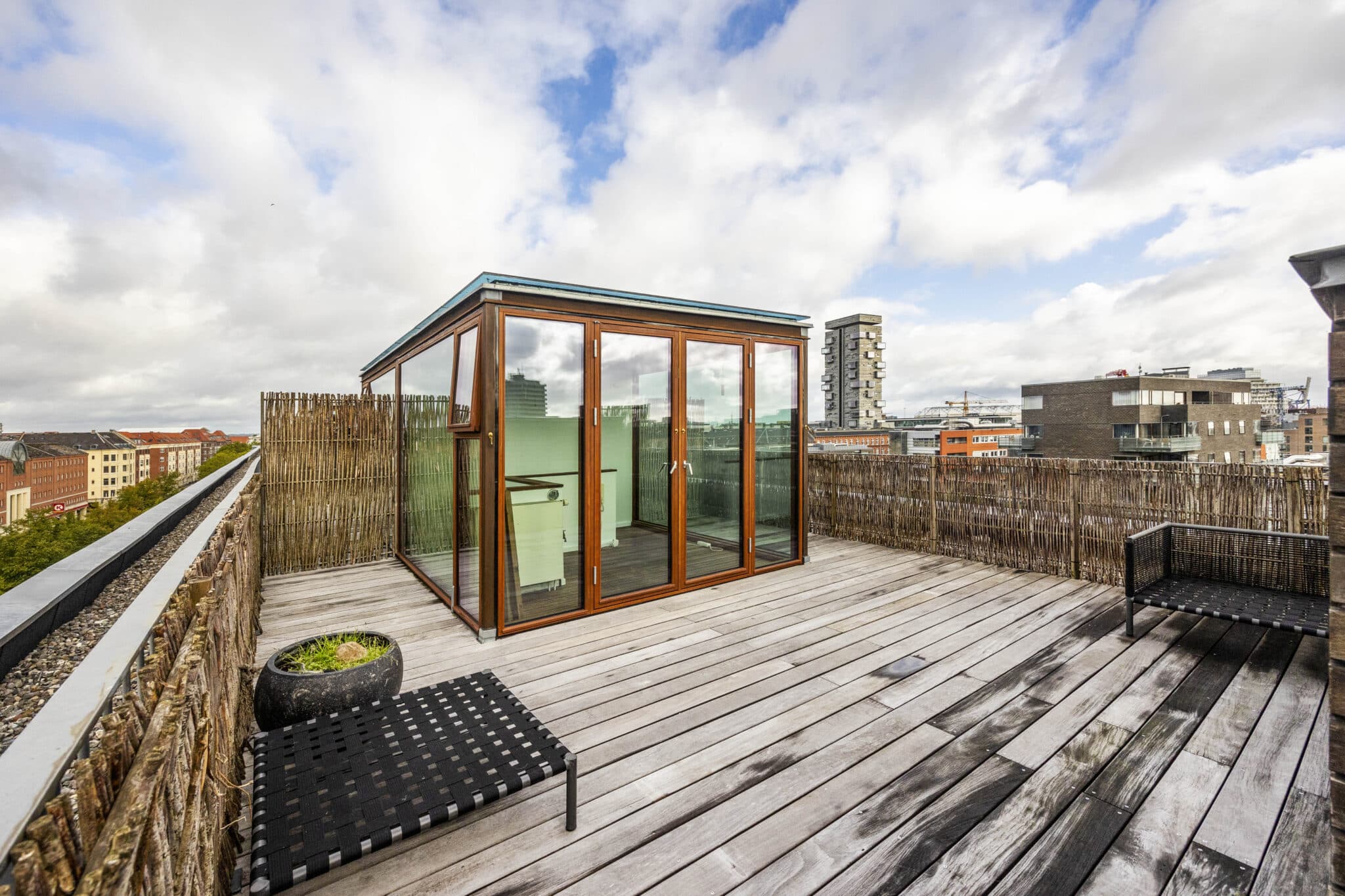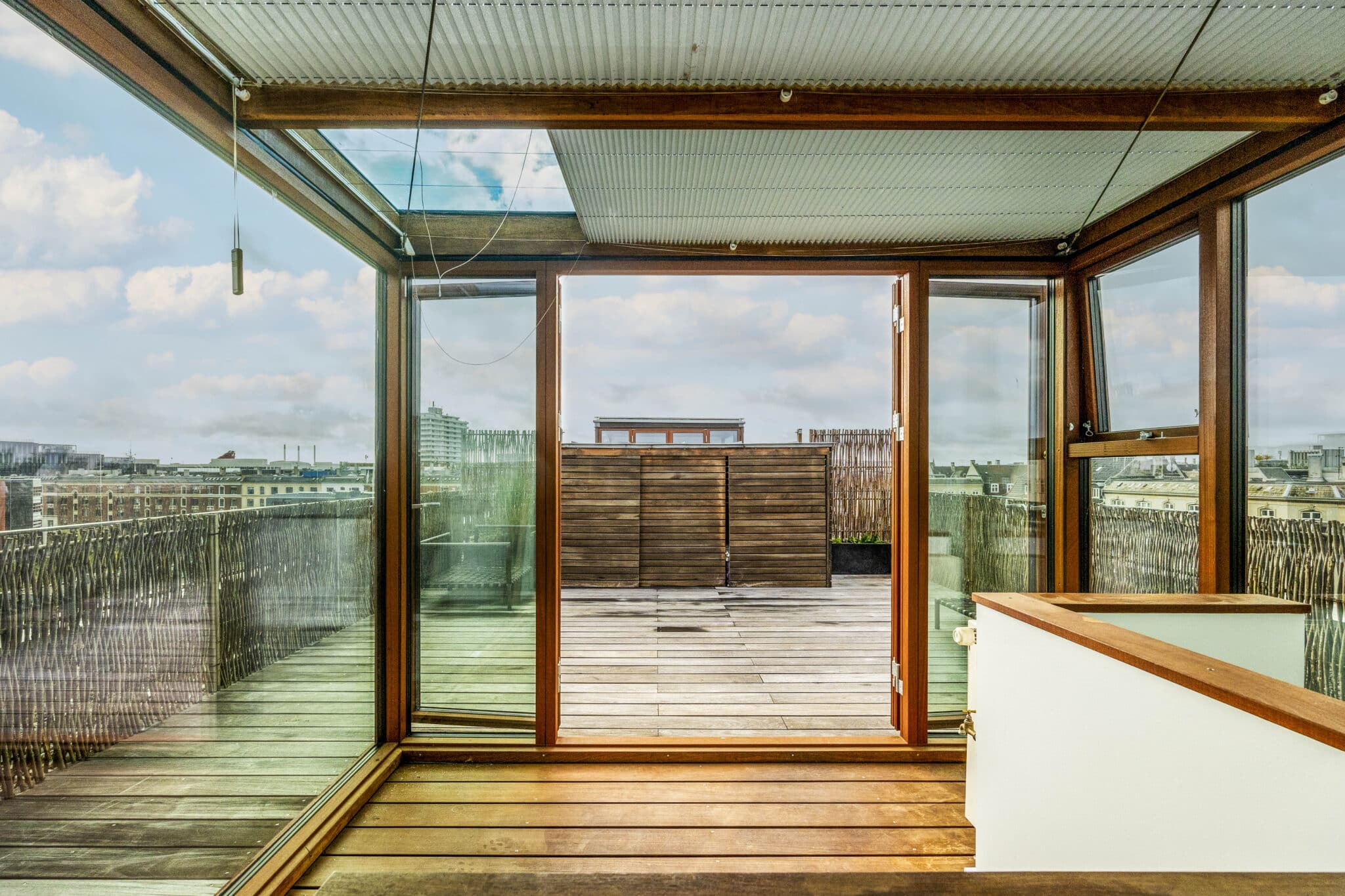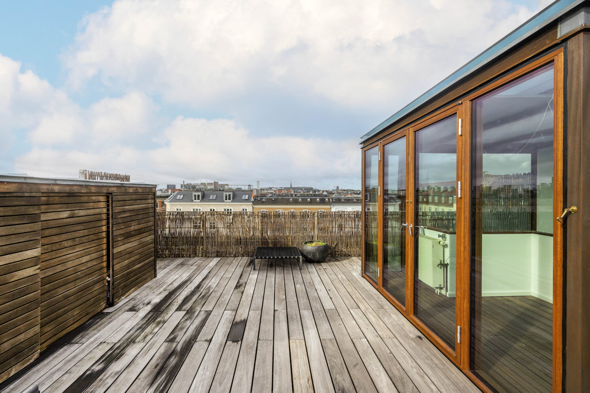 Med trappen videre op, øverst i lejligheden, har I en skøn mindre stue hvor I har direkte adgang til den skønneste store tagterrasse hvor den betagende udsigt over København med 360 grader kan nydes.