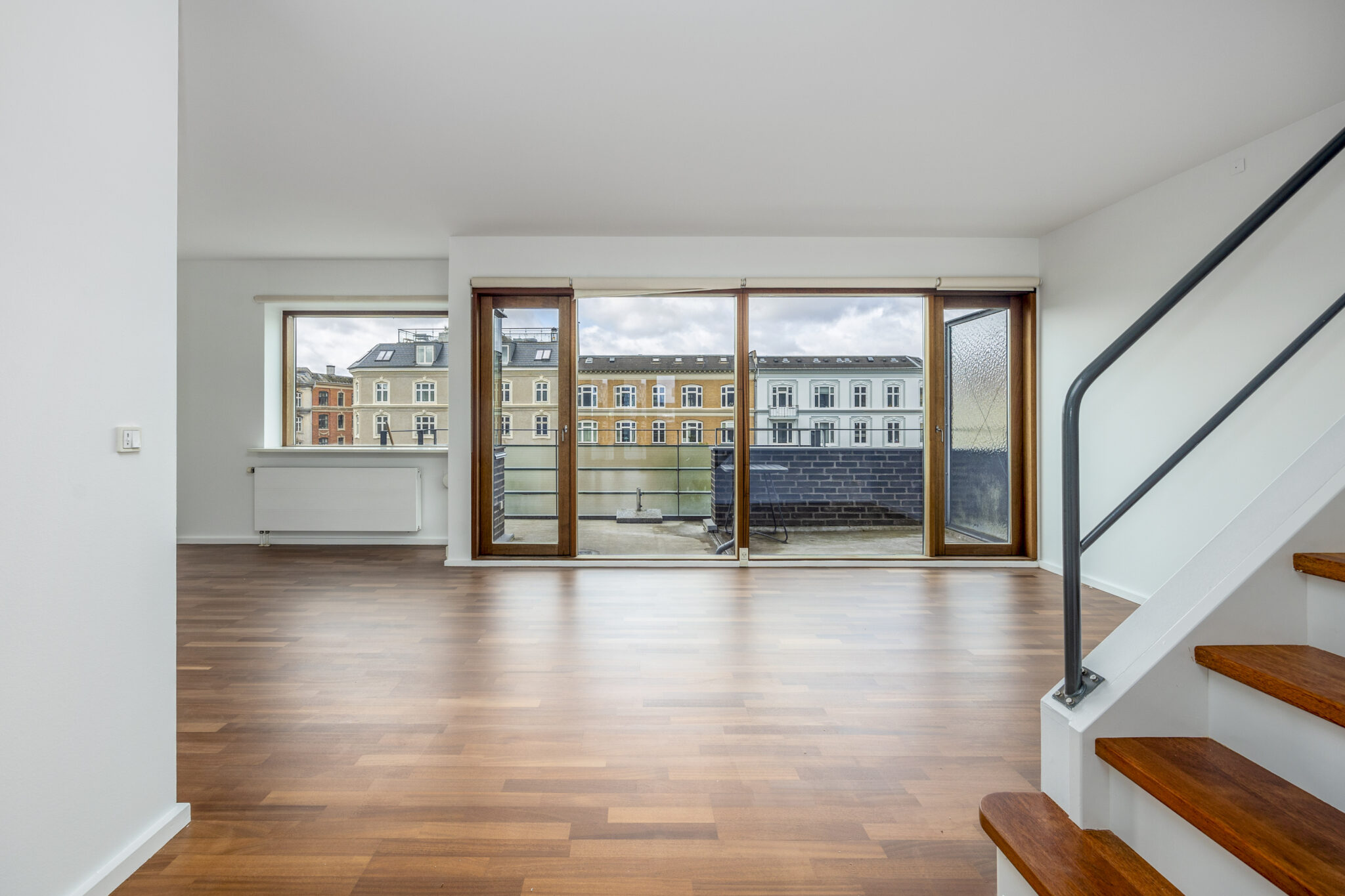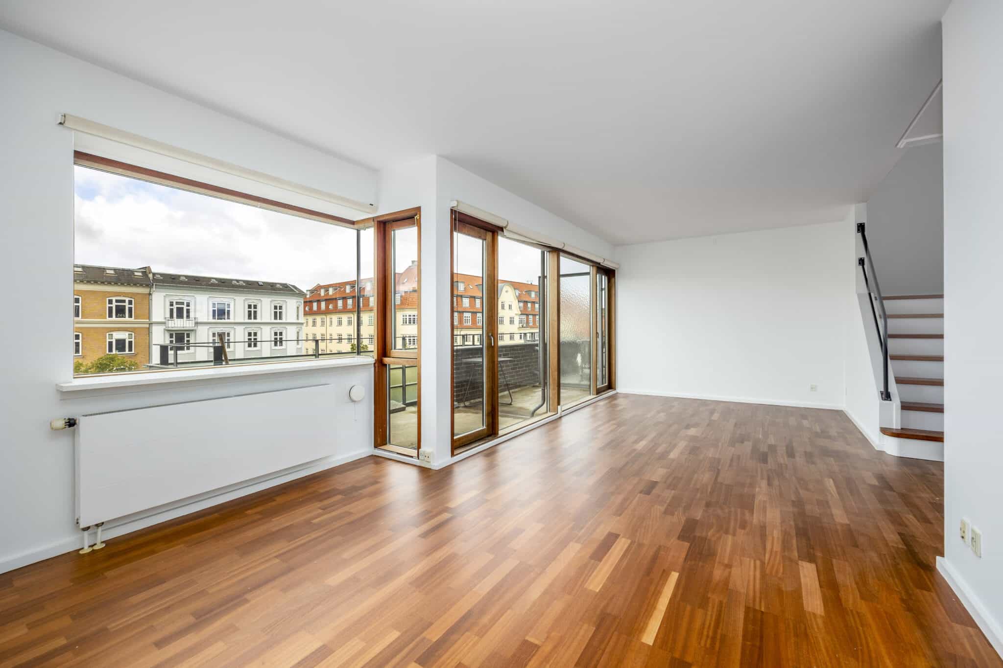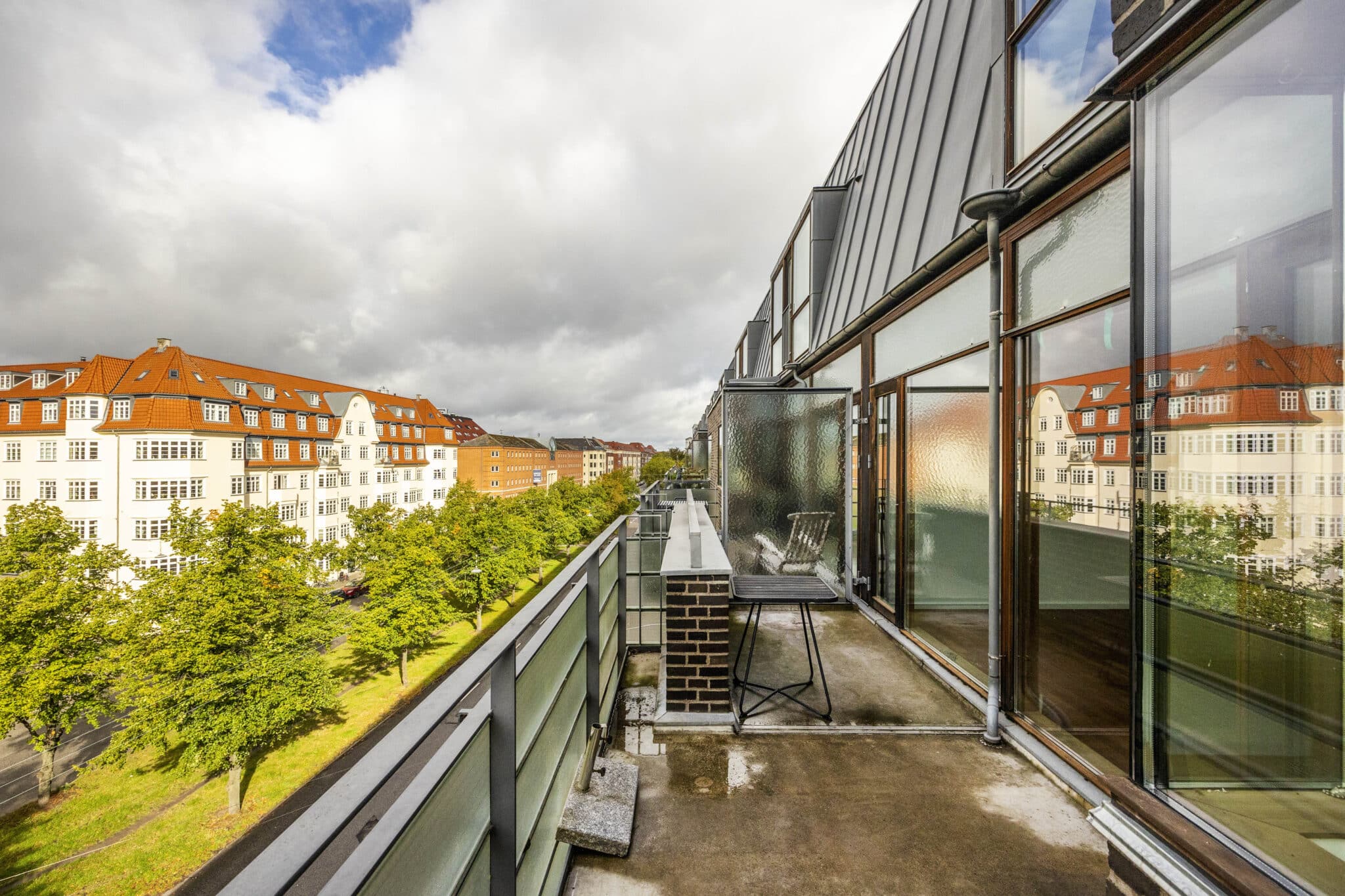 Med trappen videre op, øverst i lejligheden, har I en skøn mindre stue hvor I har direkte adgang til den skønneste store tagterrasse hvor den betagende udsigt over København med 360 grader kan nydes.