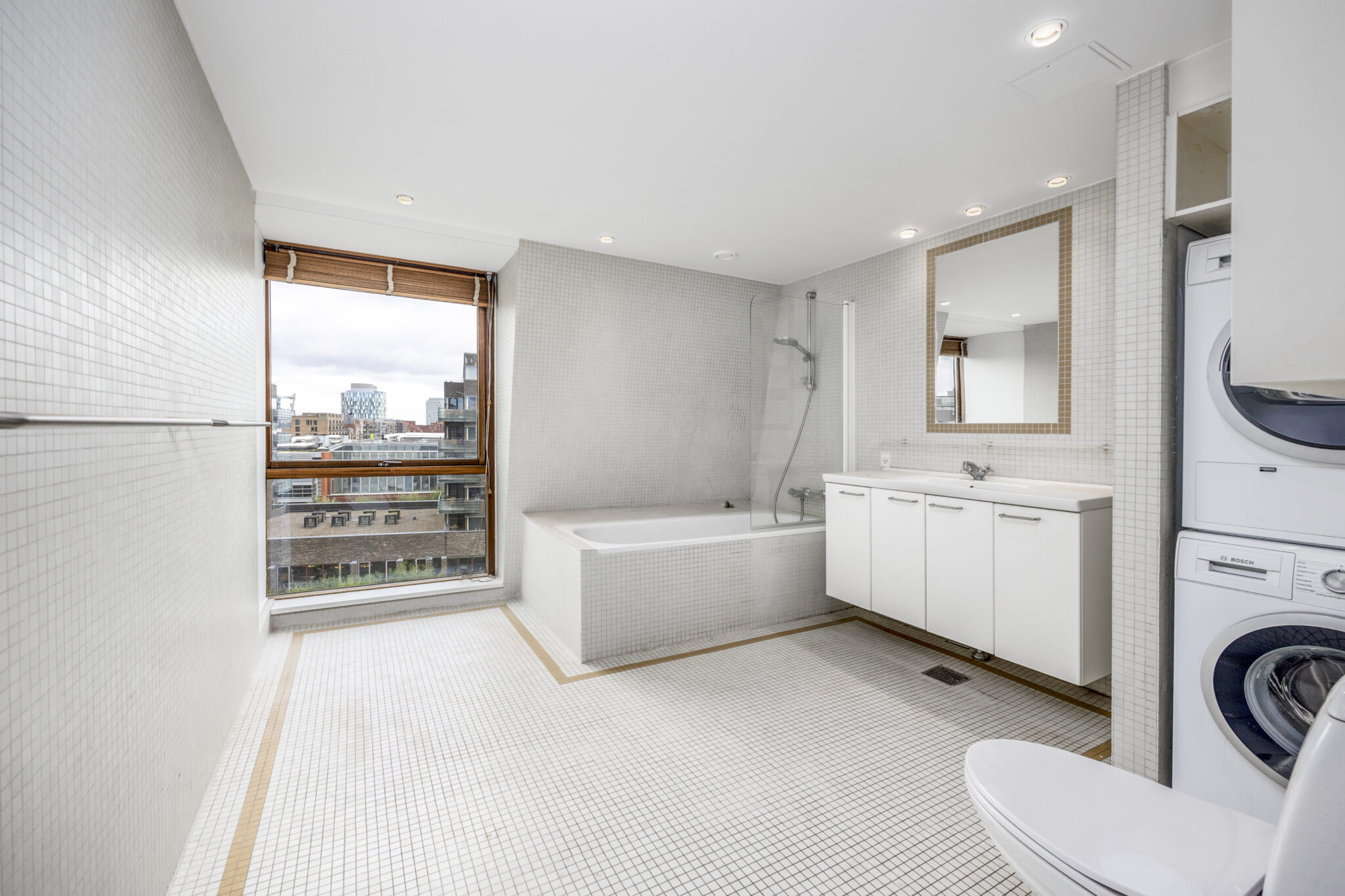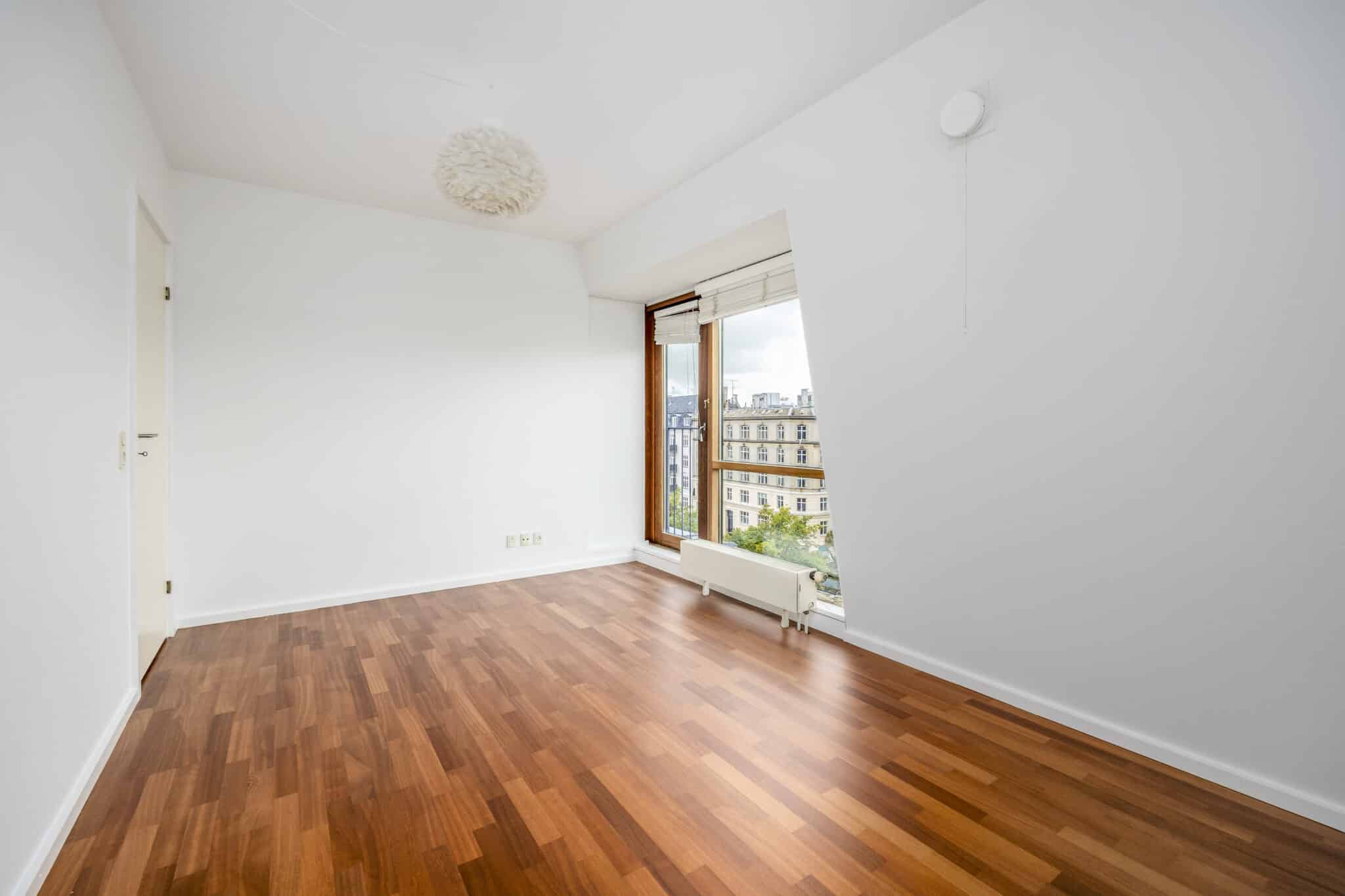 Videre op i lejligheden finder I 3 store soveværelser og et kæmpe stort badeværelse med badekar og vindue med udsigt.