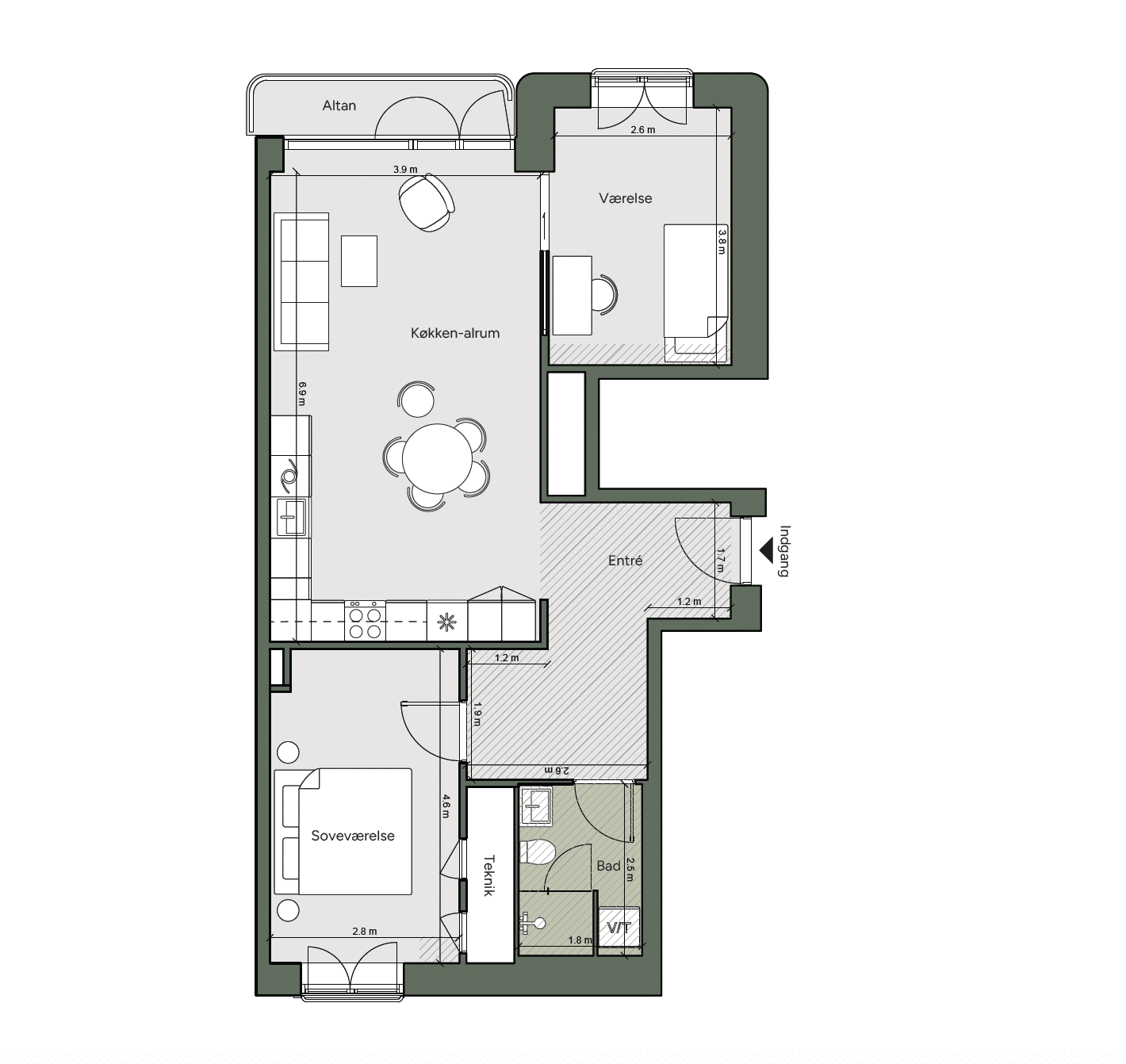 Nu udbydes en sjælden mulighed for at flytte ind i en splinterny treværelses lejlighed i det arkitektonisk spændende byggeri Elmeholm i Sydhavnen, som står klar til indflytning om blot en måned. Boligen forener moderne byliv med maritime omgivelser og grønne uderum, hvor lysindfald og materialevalg er i absolut særklasse. Hjertet i hjemmet er det store køkken-alrum, hvor et stilrent snedkerkøkken i egetræ med alt i moderne hvidevarer skaber de perfekte rammer for både madlavning og samvær. Fra alrummet er der direkte udgang til en privat altan, og lejligheden byder desuden på to gode værelser med store vinduespartier samt et lækkert badeværelse med egen vaskesøjle.