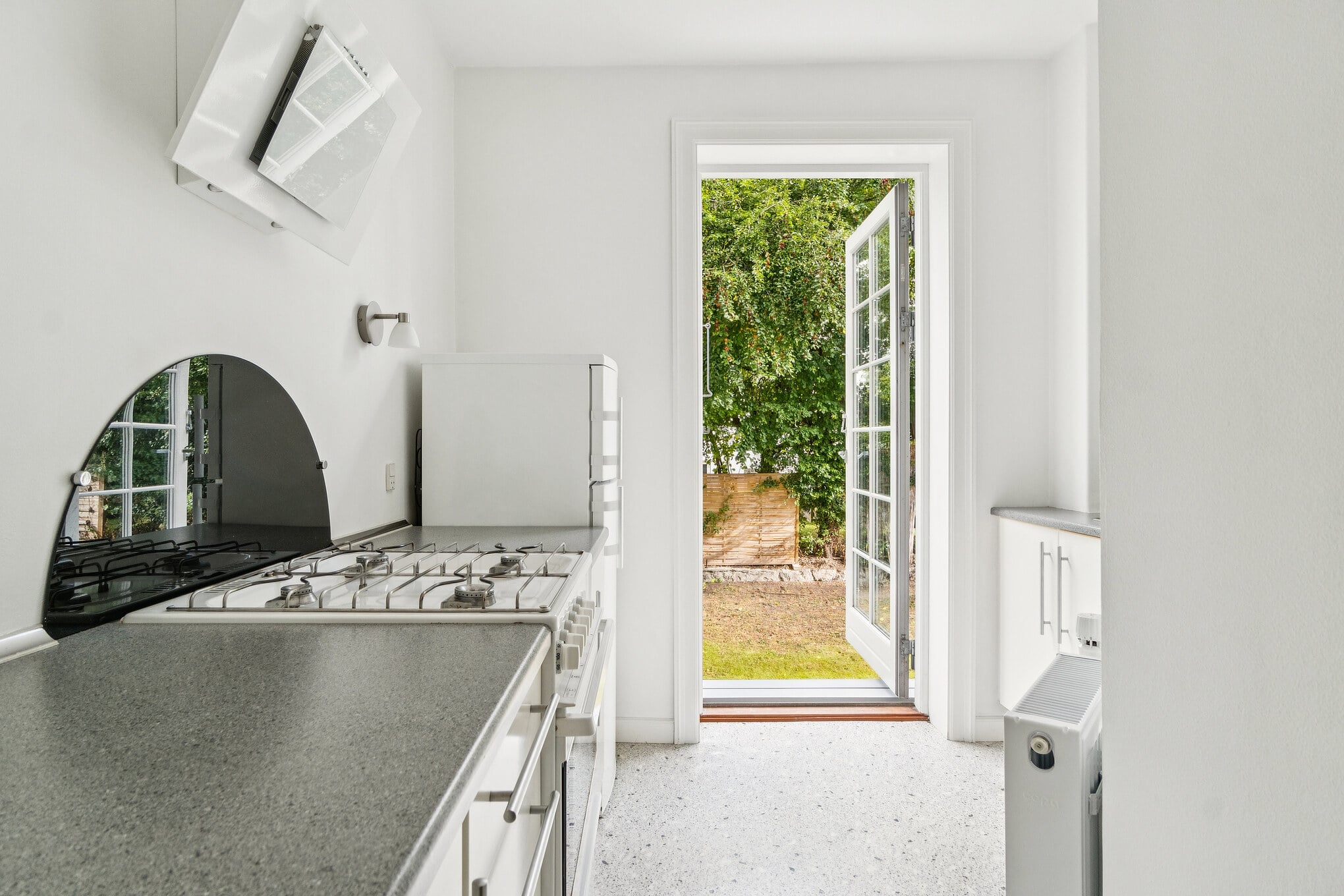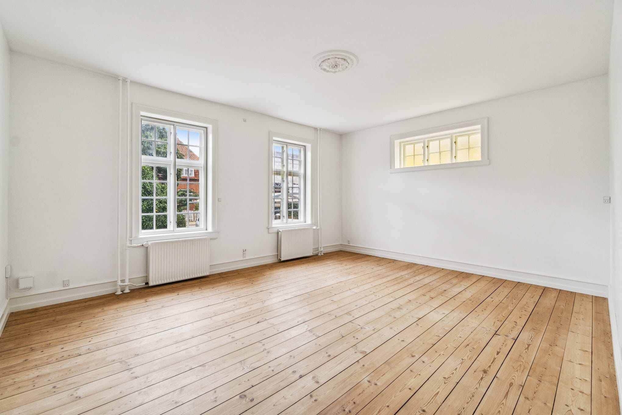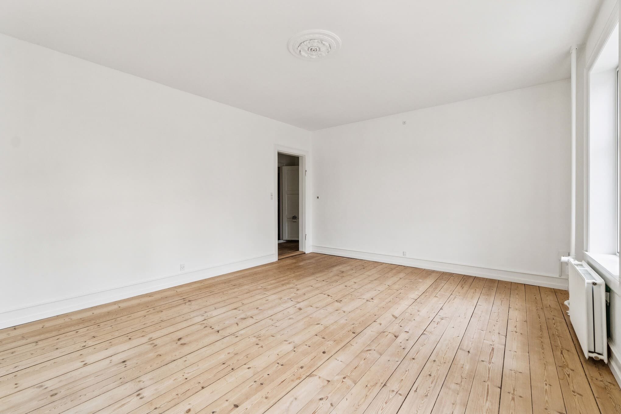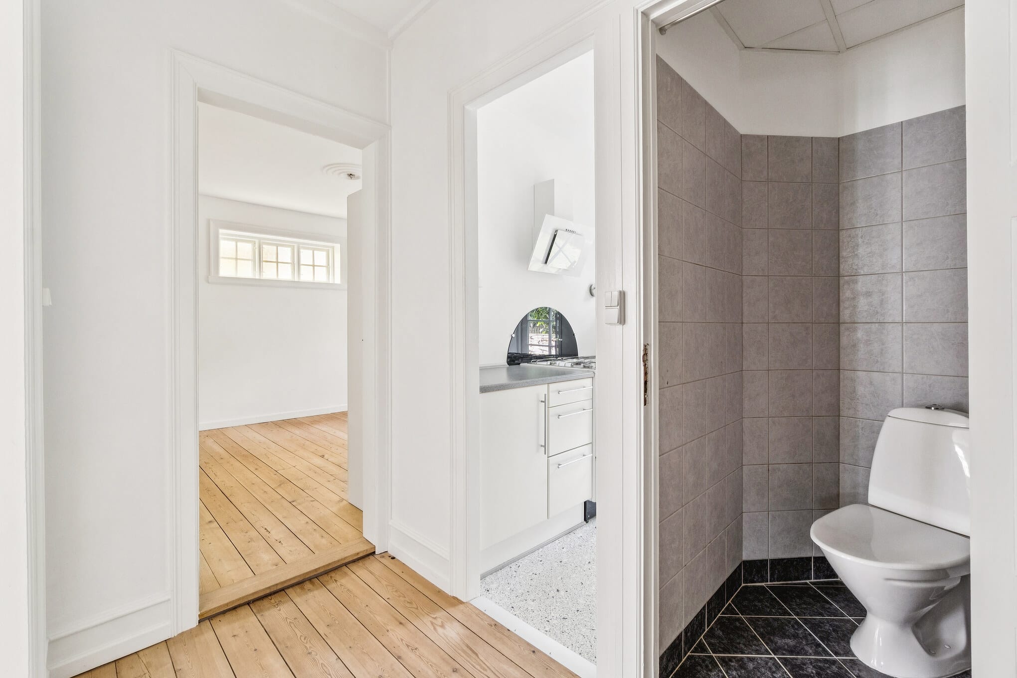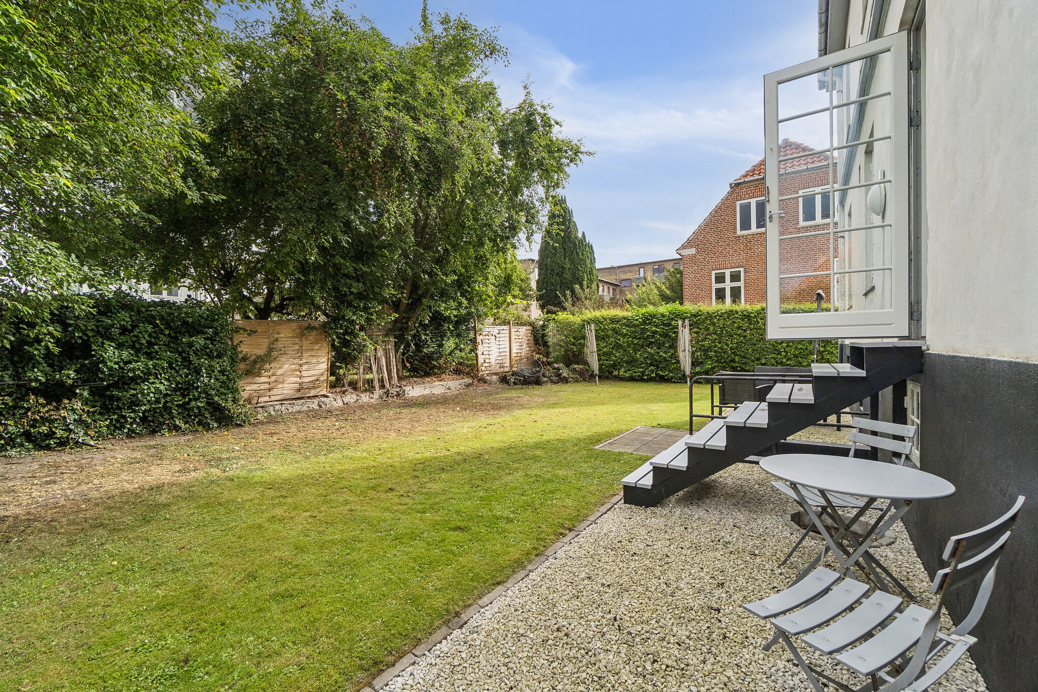 Denne flotte lejlighed er beliggende i en smuk ejendom med mange klassiske detaljer. Lejligheden byder på en stor stue, et stort soveværelse, mindre badeværelse samt et flot lyst køkken med direkte adgang til en privat terrasse hvor solen kan nydes hele dagen. I kælderen har man et privat depotrum og egen vaskemaskine.