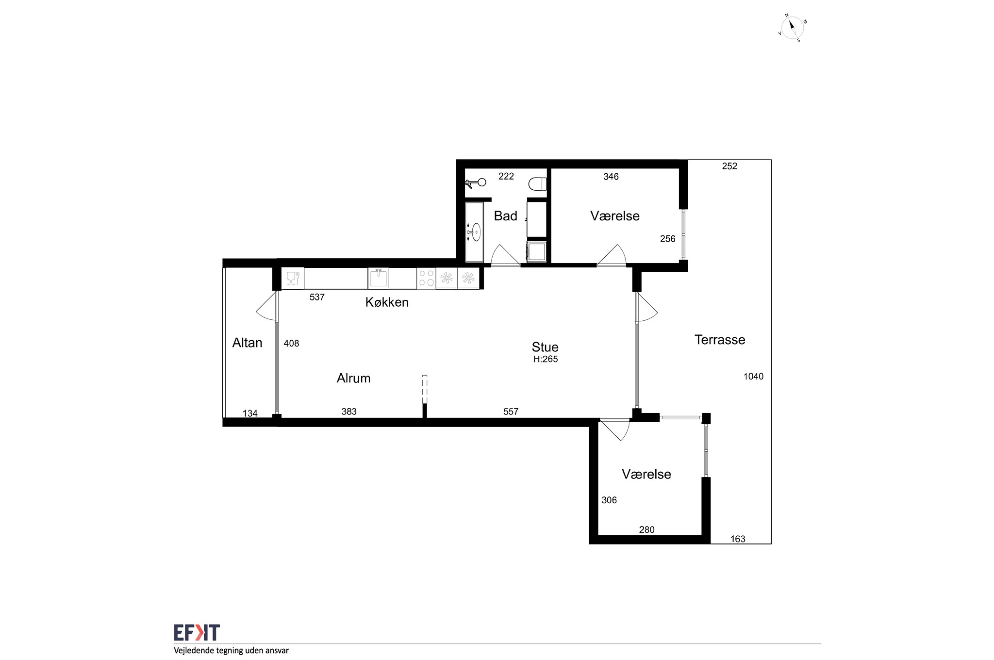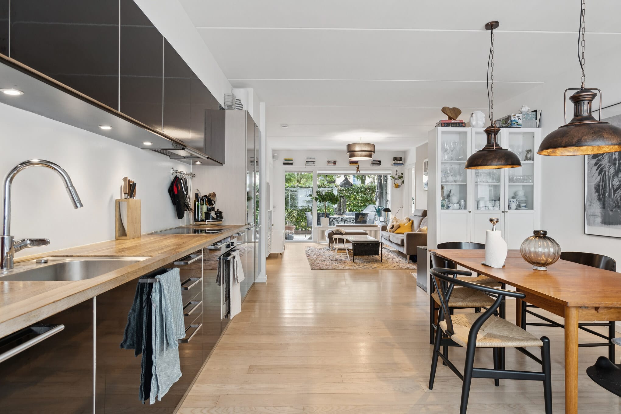 Lejligheden er møbleret og kan lejes for en tidsbegrænset periode på 6 måneder og byder på entre med adgang til hjertet i lejligheden som er det store åbne køkken alrum spisestue og dagligstue samlet i ét med adgang til privat altan og den private terrasse have. Lejligheden byder også på et stort badeværelse med vaskesøjle som 2 gode soveværelser.