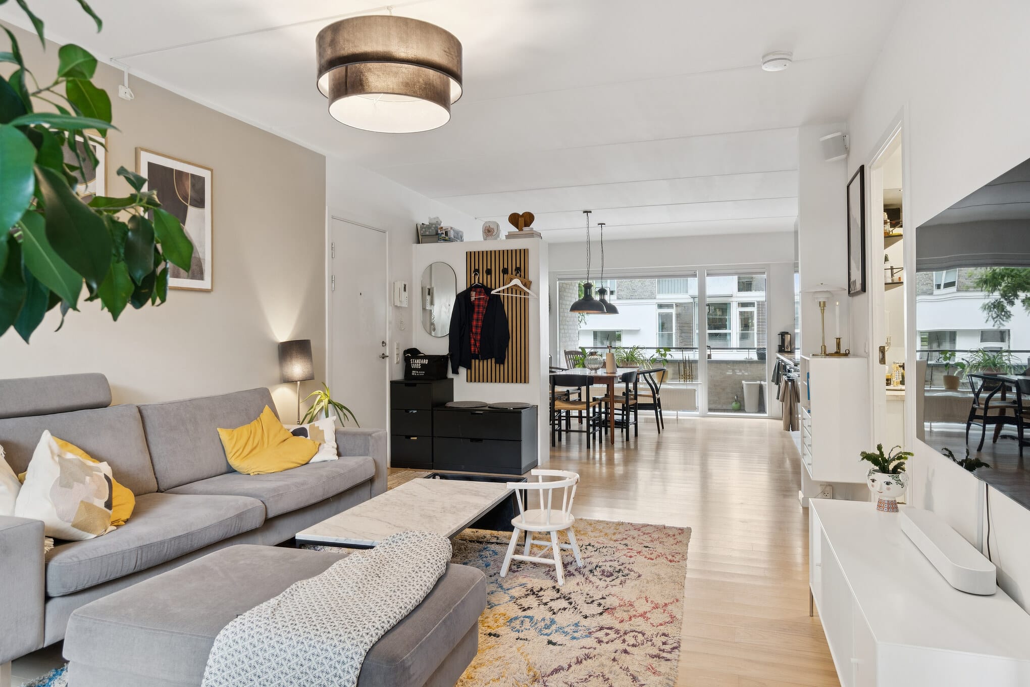 Lejligheden er perfekt til den enlige eller parret, men et par med et barn kan også bo her.
