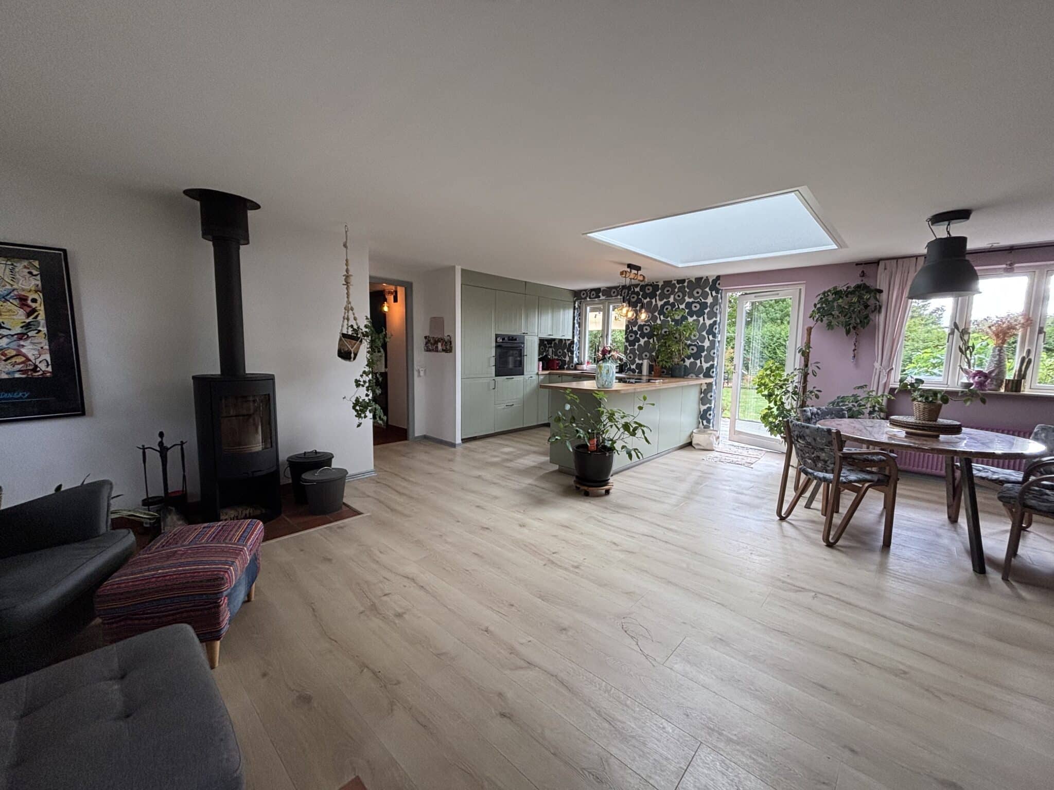 Huset er fuldt møbleret og byder på nogle skønne værelser et stort og renoveret flot badeværelse. Et bryggers og et skønt køkken alrum med spiseafdeling og dagligstuen samlet i ét, og med direkte adgang til haven. Her er også en hyggelig brændeovn.
