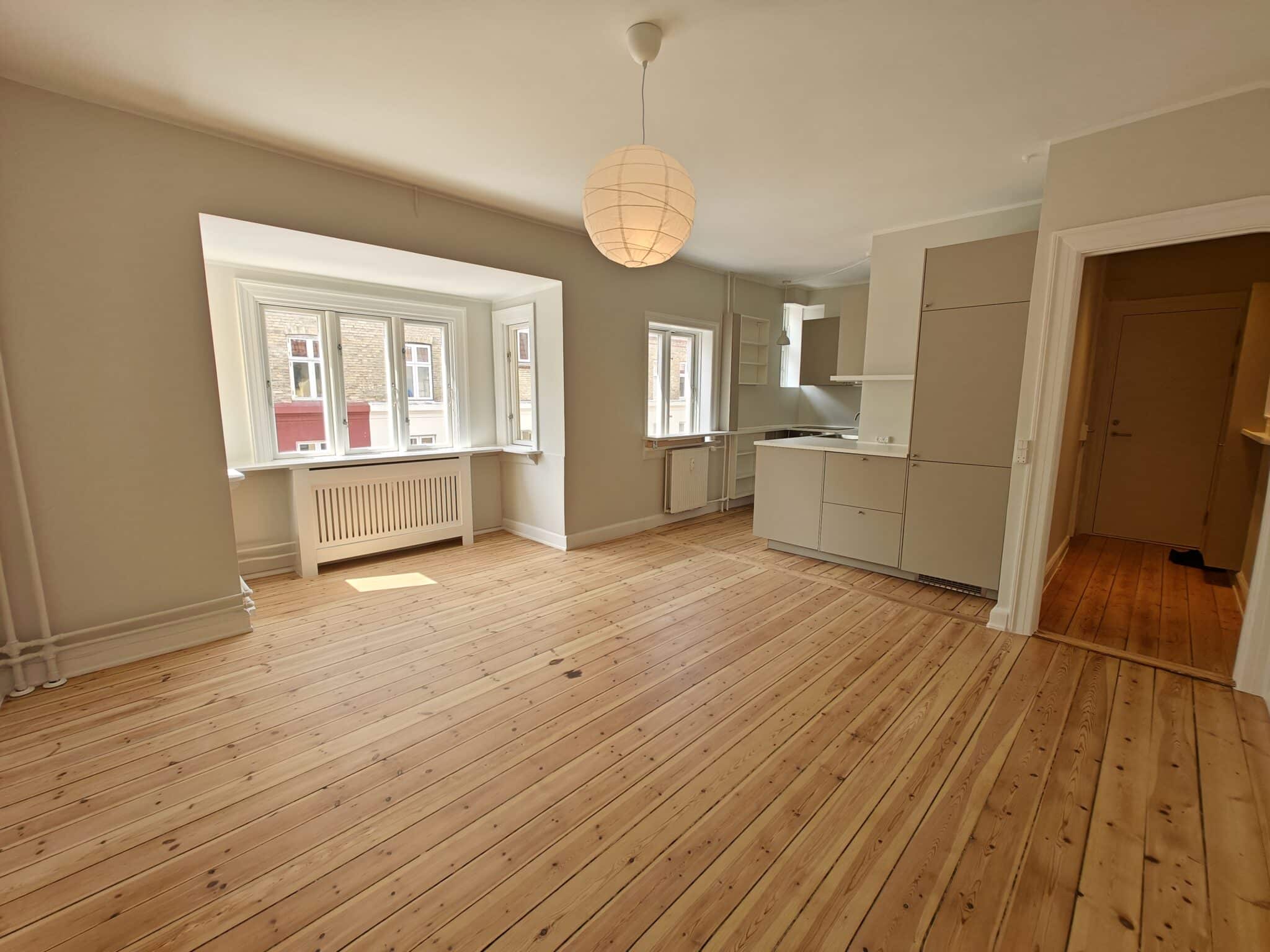 Denne lejlighed er bestående af en entré med igarderobe skab, badeværelse, et nyt køkken i forbindelse med stuen samt et soveværelse med skabsplads. Ejendommen byder på en hyggelig gård og have samt cykelparkering og et pænt vaskeri hvor man booker og betaler med app.