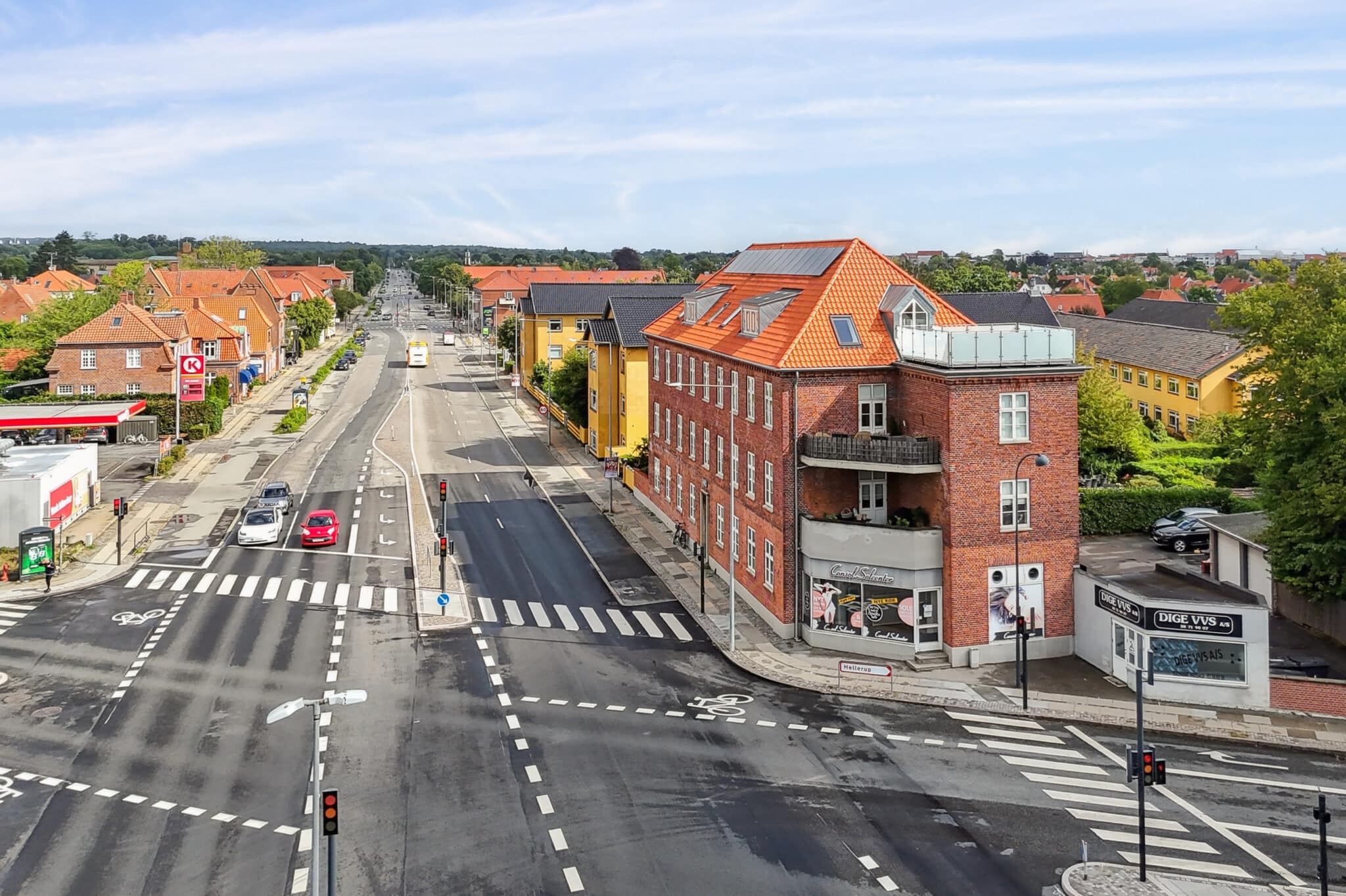 Beliggenheden er i hjertet af Hellerup – tæt på caféer, butikker, skoler og offentlig transport. Charlottenlund Skov, strandparken og Tuborg Havn ligger lige om hjørnet og giver rig mulighed for både natur og byliv.